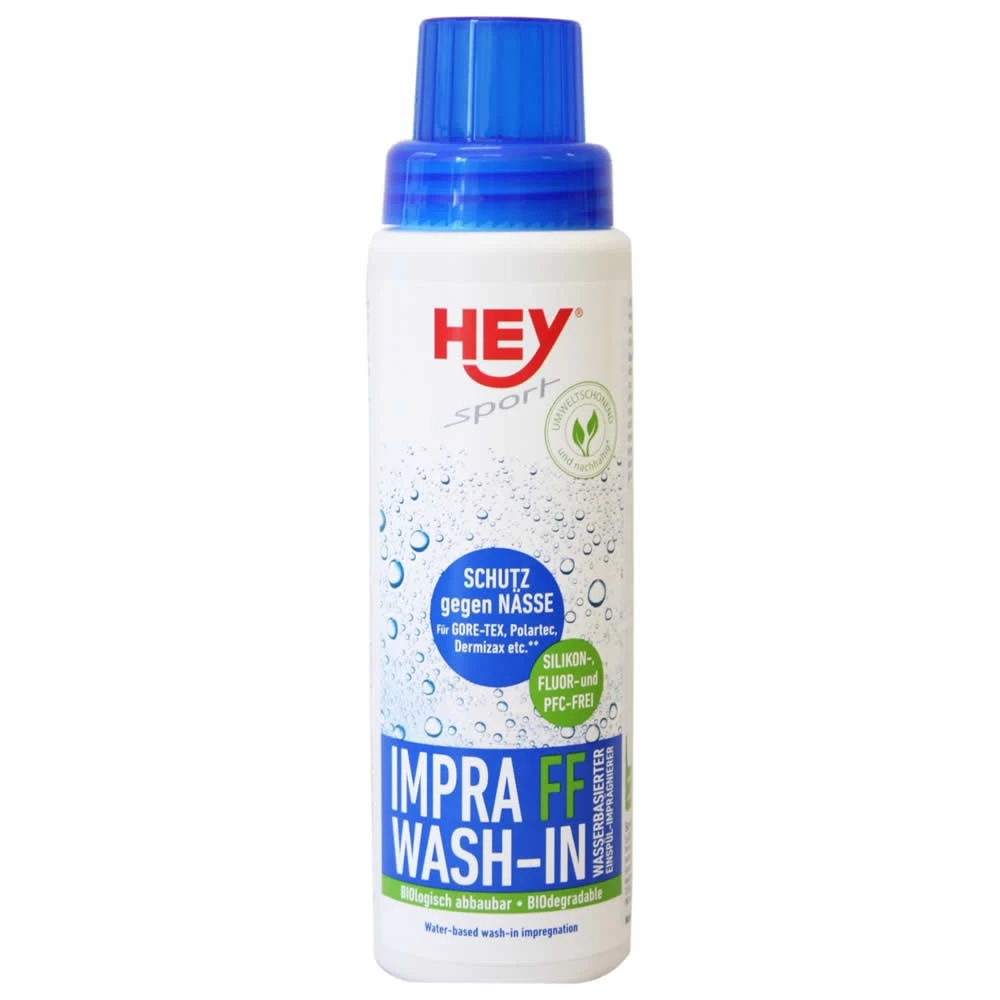 HEY SPORTÂź Impra FF Wash-In ist die fluorfreie Alternative. Die fluorfreien EinspĂŒl-ImprĂ€gnierungen ist wasserbasiert, ohne Lösungsmittel, benzin- und parfĂŒmfrei. Die innovativen Rezepturen sorgen fĂŒr die bestmögliche Performance im Bereich der fluorfreien und nachhaltigen ImprĂ€gnierung. HEY SPORTÂź Impra FF Wash-In erhĂ€lt die AtmungsaktivitĂ€t, mit Faserschutz fĂŒr Membrantextilien. Mit einzigartiger Farbschutzformel. SchĂŒtzt gegen NĂ€sse. Nach dem EinspĂŒlen wird die ImprĂ€gnier-Wirkung durch WĂ€rmezufuhr aktiviert.