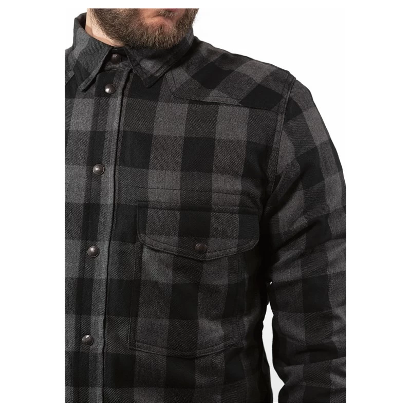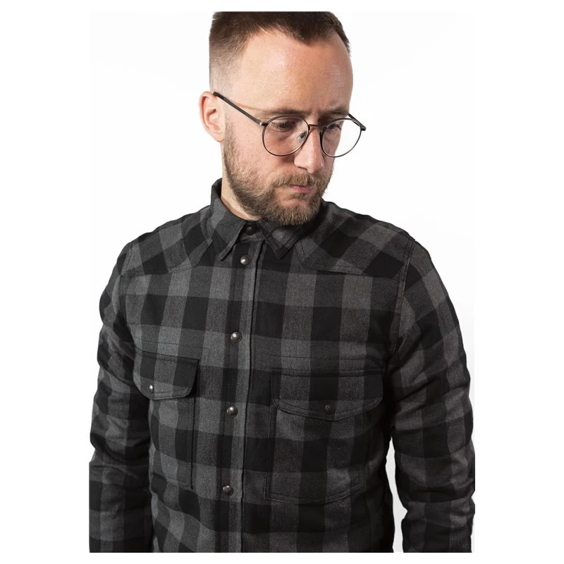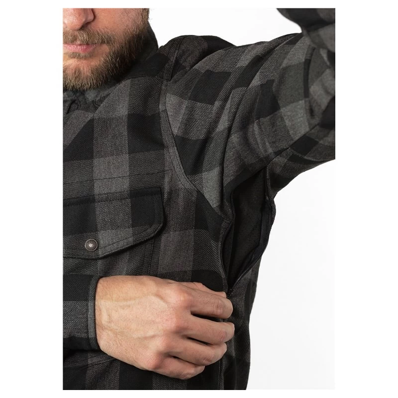Die Motorradjacke vereinigt einen tollen klassischen Look mit neuester Sicherheitstechnologie. Die hohe Funktionalität und den entsprechenden Schutz bei Extrembelastungen verdankt das Lumberjack Shirt der Kombination aus einem Flanell-Baumwoll-Twill und seinem Innenfutter aus XTM-Fiber® (Fasertechnologie aus DuPont™ Kevlar® / Coolmax® und Lycra®).
