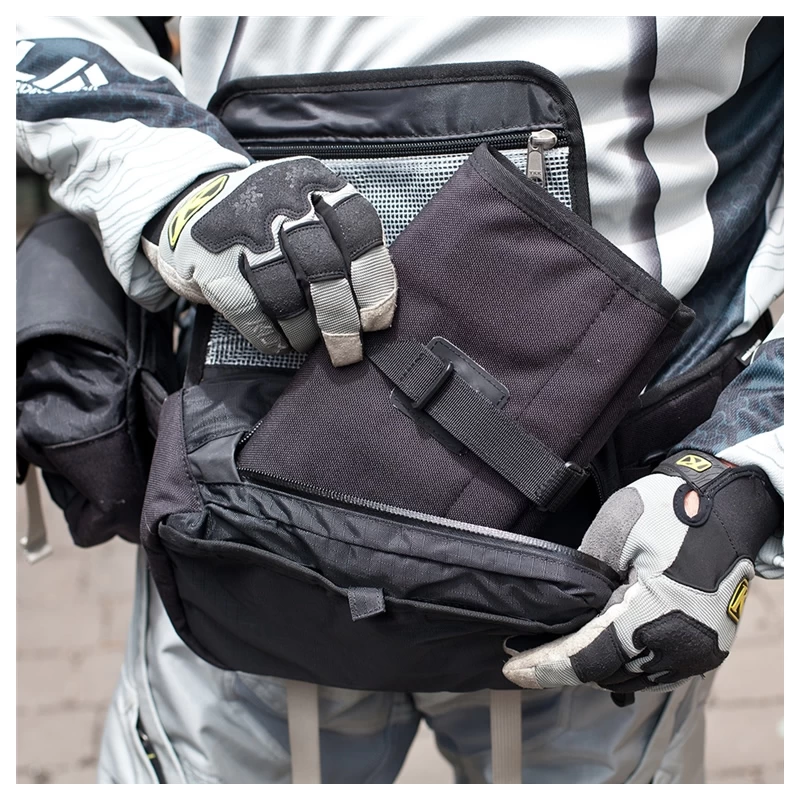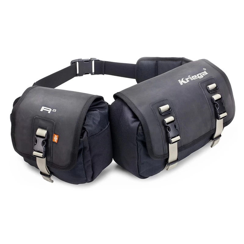 Die Kriega HĂŒfttasche R8 ist eine 6-Liter-GĂŒrteltasche mit ReiĂverschluss und abnehmbarer Condura-Werkzeugtasche plus 100% wasserdichter 2-Liter-Seitentasche mit Klappe.