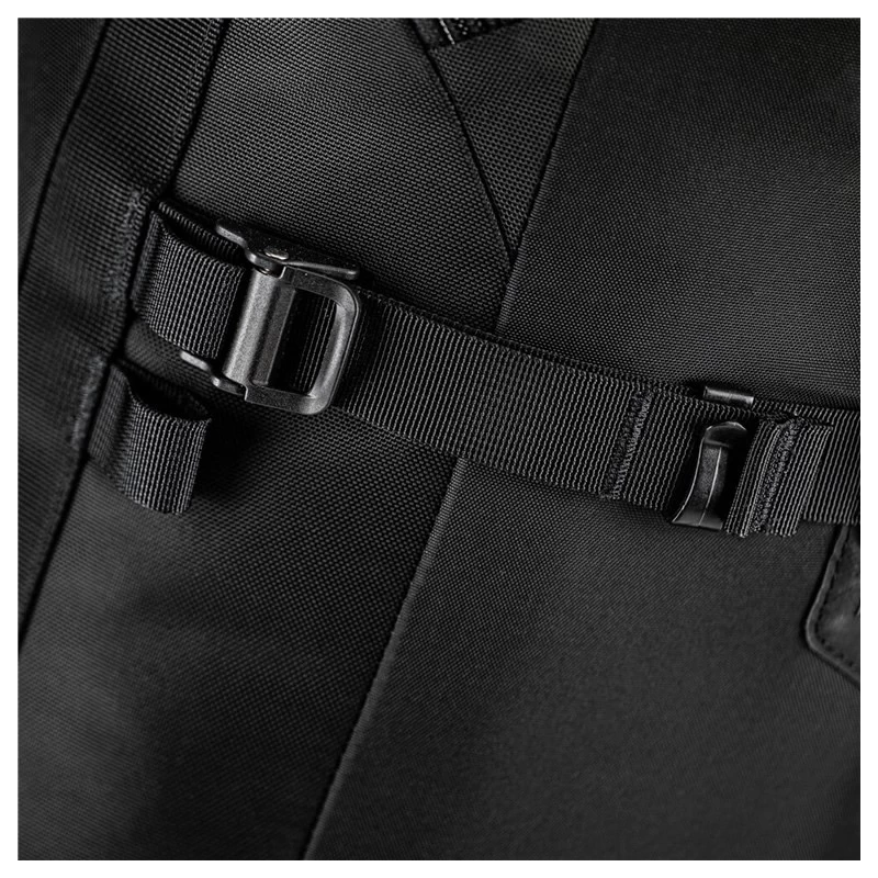 Vier Kompressionsriemen halten den Inhalt stabil. Das Hauptfach enthält ein Innenfutter mit getapten Nähten, das mit Klettstreifen fixiert wird. Leicht abnehmbar zum Reinigen und in weißer Farbe, um das Auffinden des Kits am Boden des Rucksacks zu erleichtern. Das herausnehmbare weiße Innenfutter ist durch die verklebte Naht wasserdicht.