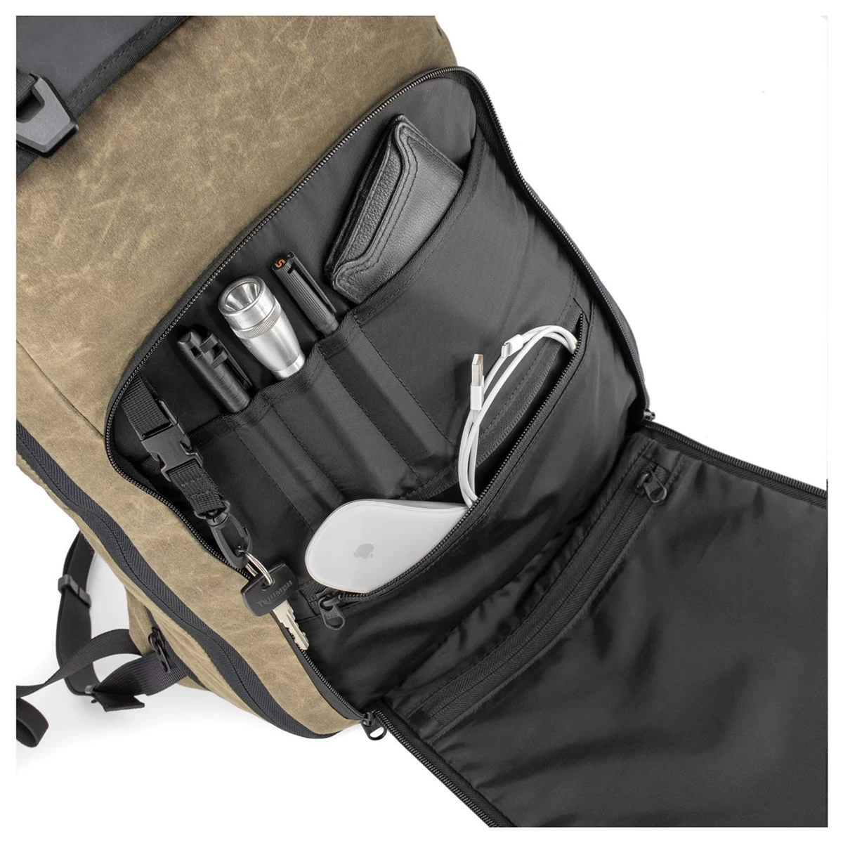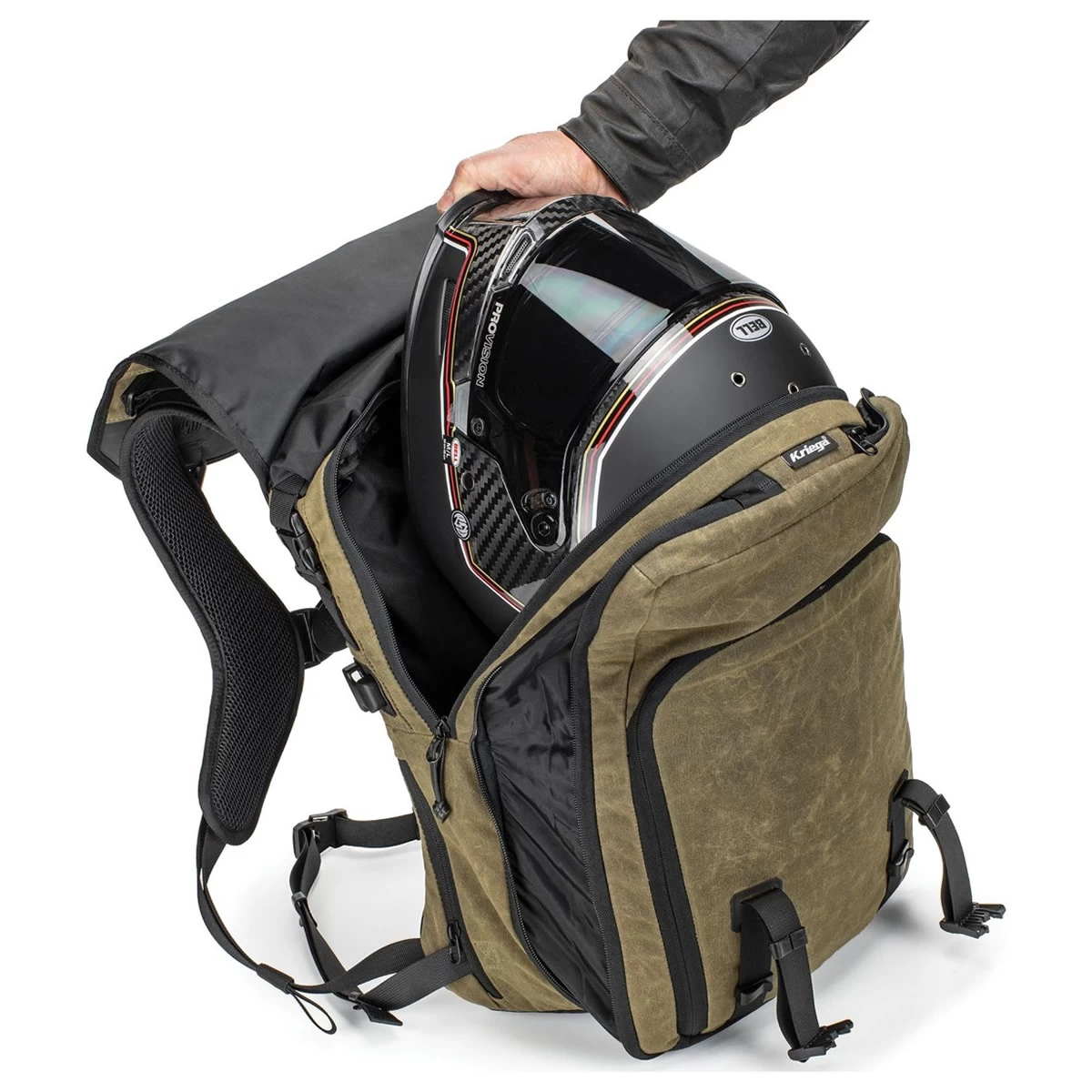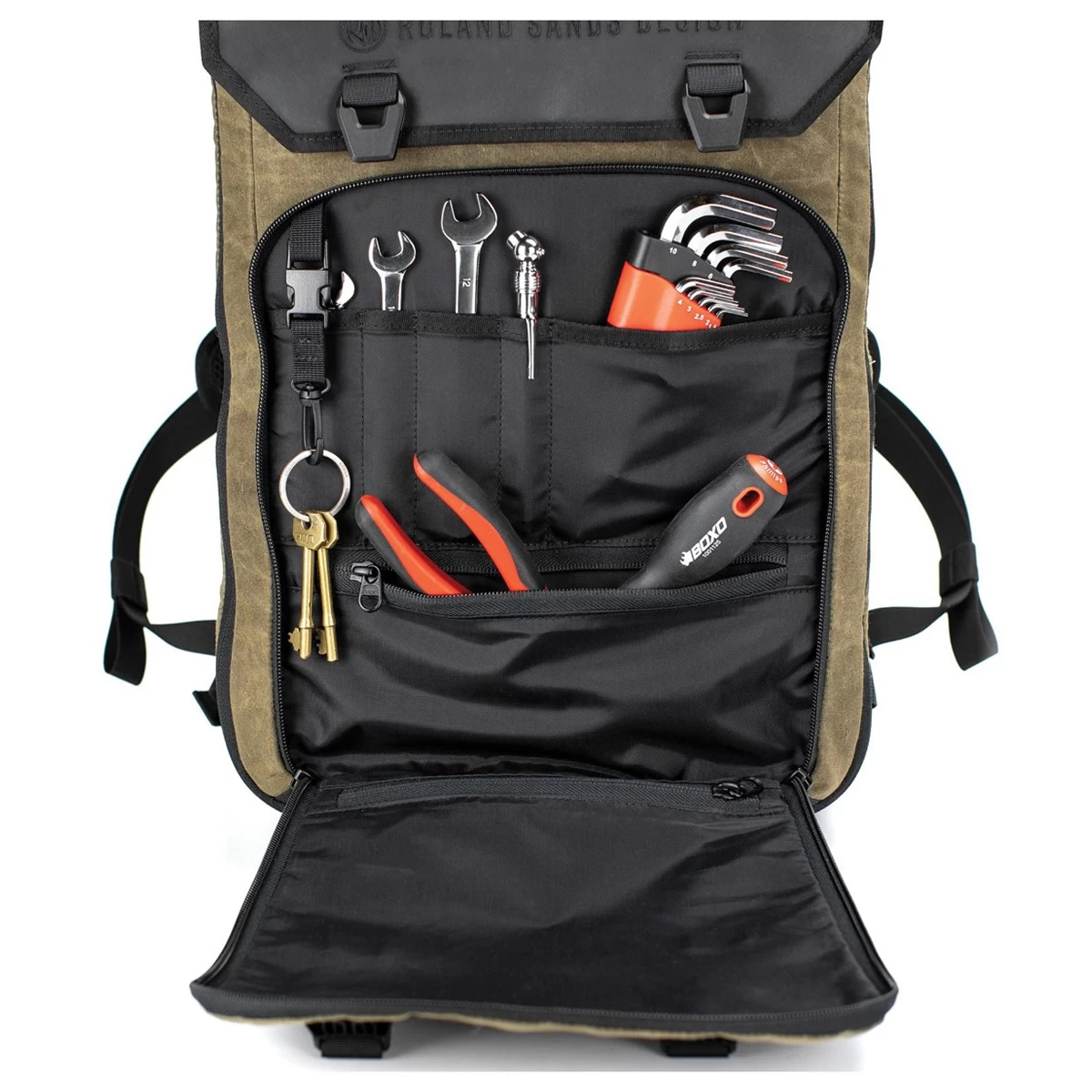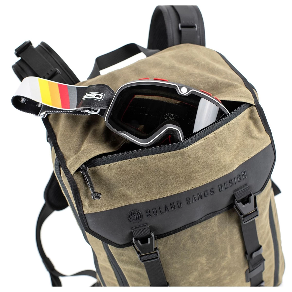 Roland Sands Design – Der Roam 34 Rucksack ist aus RSDs geschützter Wachsbaumwolle zusammen mit 1000D Cordura® gefertigt und mit Kriegas bahnbrechendem Quadloc-Lite™-Gurt kombiniert, um eine Verbindung aus klassischem Stil und konkurrenzloser Funktionalität zu schaffen.