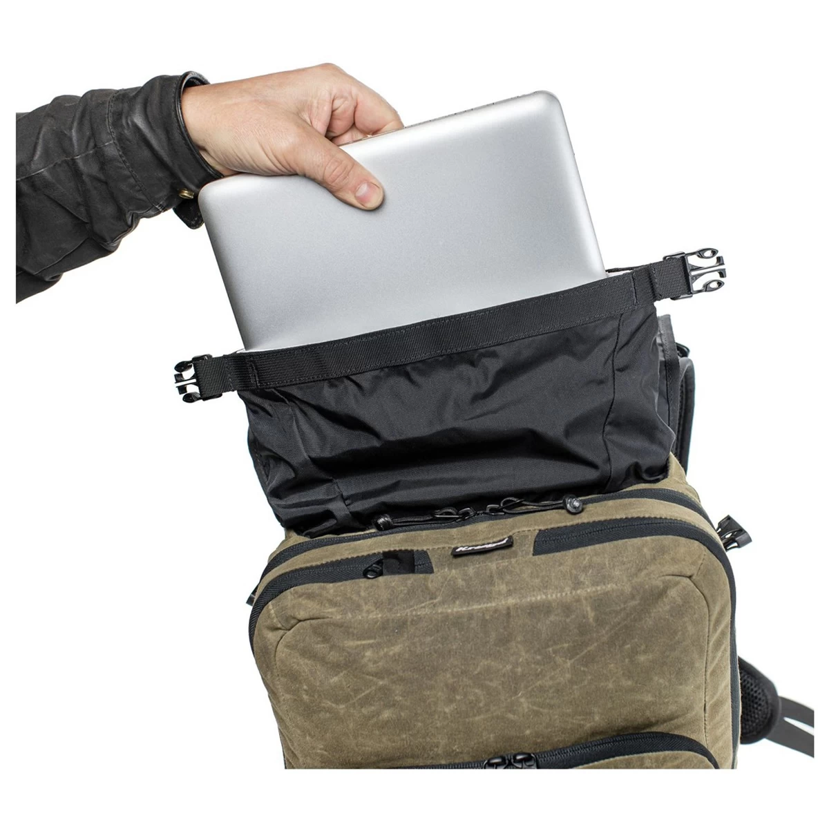 Bestehend aus 3 Teilen: einer wasserdichten 15-Zoll-Laptoptasche mit Rollverschluss, einem herunterklappbaren 4-Liter-Reißverschlussfach mit Organizer-Taschen und einem geräumigen Hauptfach mit strapazierfähigem YKK®-Reißverschlusszugang. Erweiterbar von 22 auf 30 Liter. Ideal zum Tragen eines Integralhelms in der Stadt oder zum Beladen mit den wöchentlichen Einkäufen. Zusätzliche Merkmale umfassen eine mit Fleece gefütterte Goggle-/Eyewear-Reißverschlusstasche, einen optionalen Hüftgurt mit Aufbewahrungstaschen und Sissybar-Befestigungsgurte.