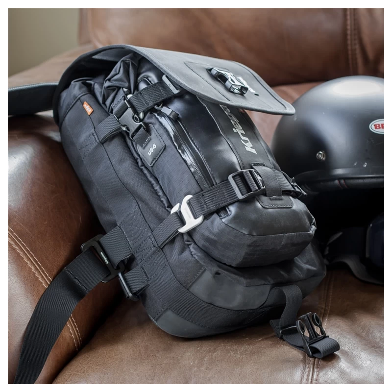 Gepolsterter und abnehmbarer Schulter-Träger welcher beidseitig (links oder rechts) getragen werden kann. Schnelle und einfache Riemenverstellung mit dem patentierten Riemenregler von Kriega. Einfaches an- und ausziehen auch während der Helm getragen wird. Abnehmbarer Hüftgurt für zusätzliche Stabilität beim Fahren. Das Hauptfach hat ein Fassungsvermögen von etwa ca. 8 Liter und eine weiße Innenschicht, die zum Reinigen leicht entfernt werden kann. Die Seitentasche mit wasserdichtem YKK®-Reißverschluss ist leicht zugänglich und bspw. ideal für eine Wasserflasche, Handschuhe etc.. Eine weitere Mesh-Innentasche mit YKK®-Reißverschluss kann genutzt werden für Karten, Kabel etc.