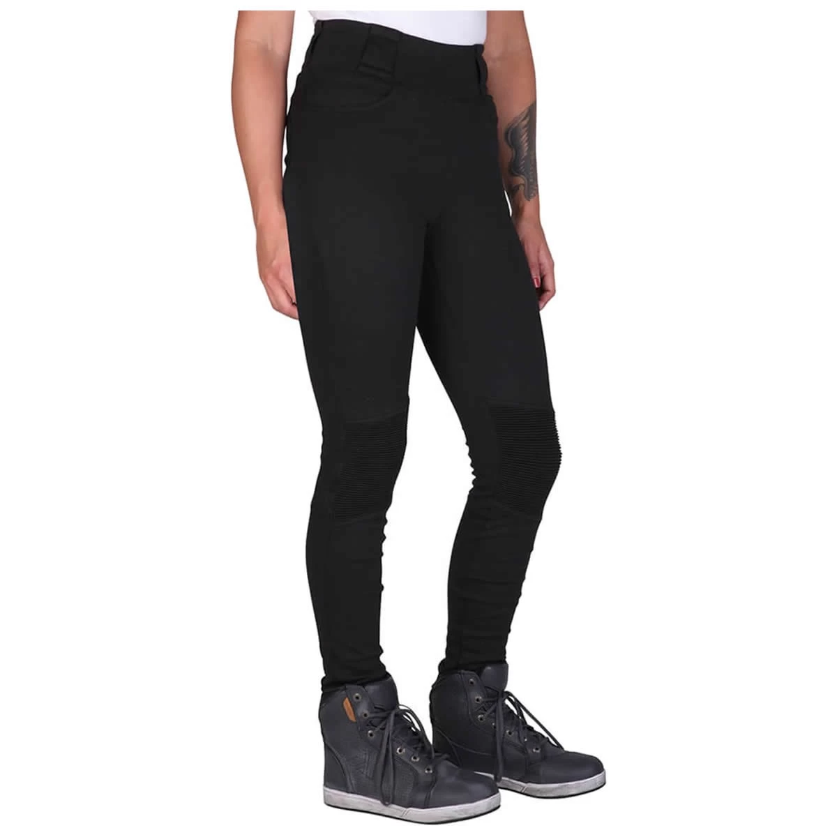 Modekas Motorradleggins Deola ist eine schwarze, Skinny-Fit Leggins, mit vollflÀchigem DuPont⹠KEVLARŸ Futter. Die ultra-flachen SAS-TEC Knieprotektoren machen die Leggins absolut alltagstauglich.