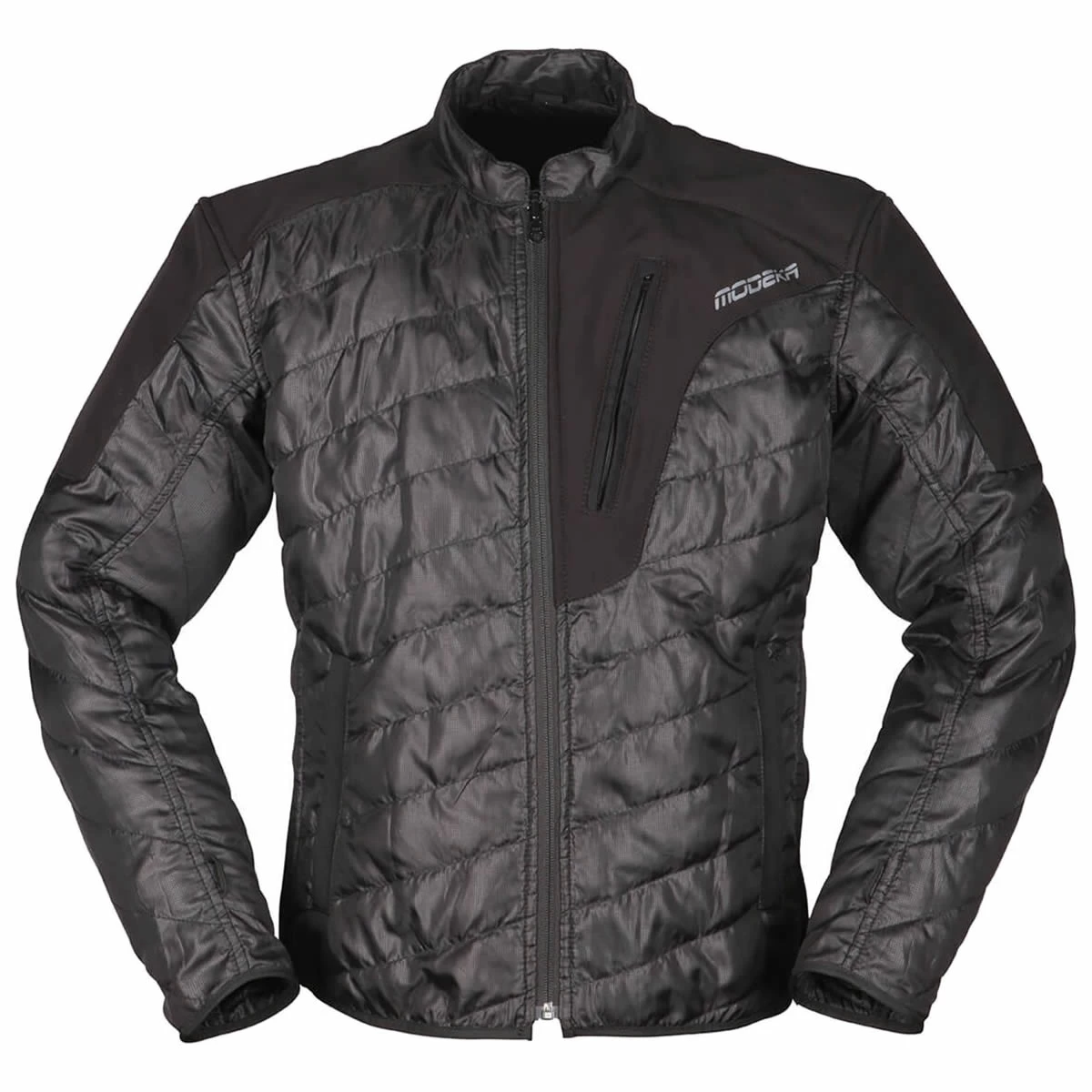 Leichte Mittelschichtjacke: Solo tragbar oder als zusĂ€tzlich unter der Motorradjacke. Mit Taschen ausgestattet und seitlichem Stretch ist die mit Polyester gefĂŒllte Steppjacke absolut alltagstauglich.