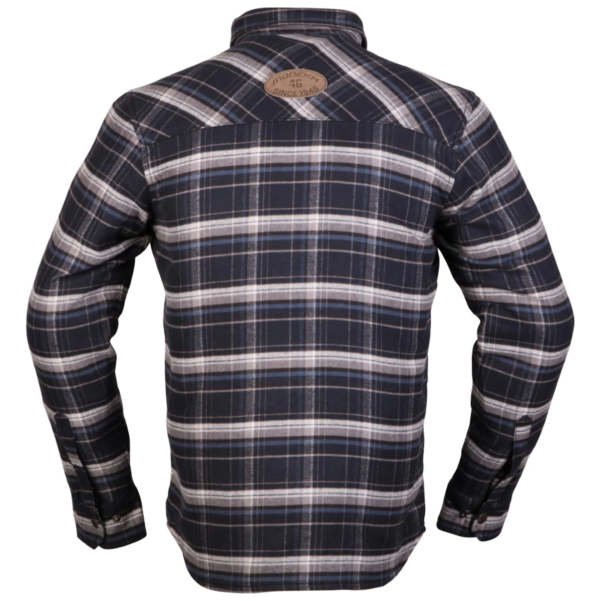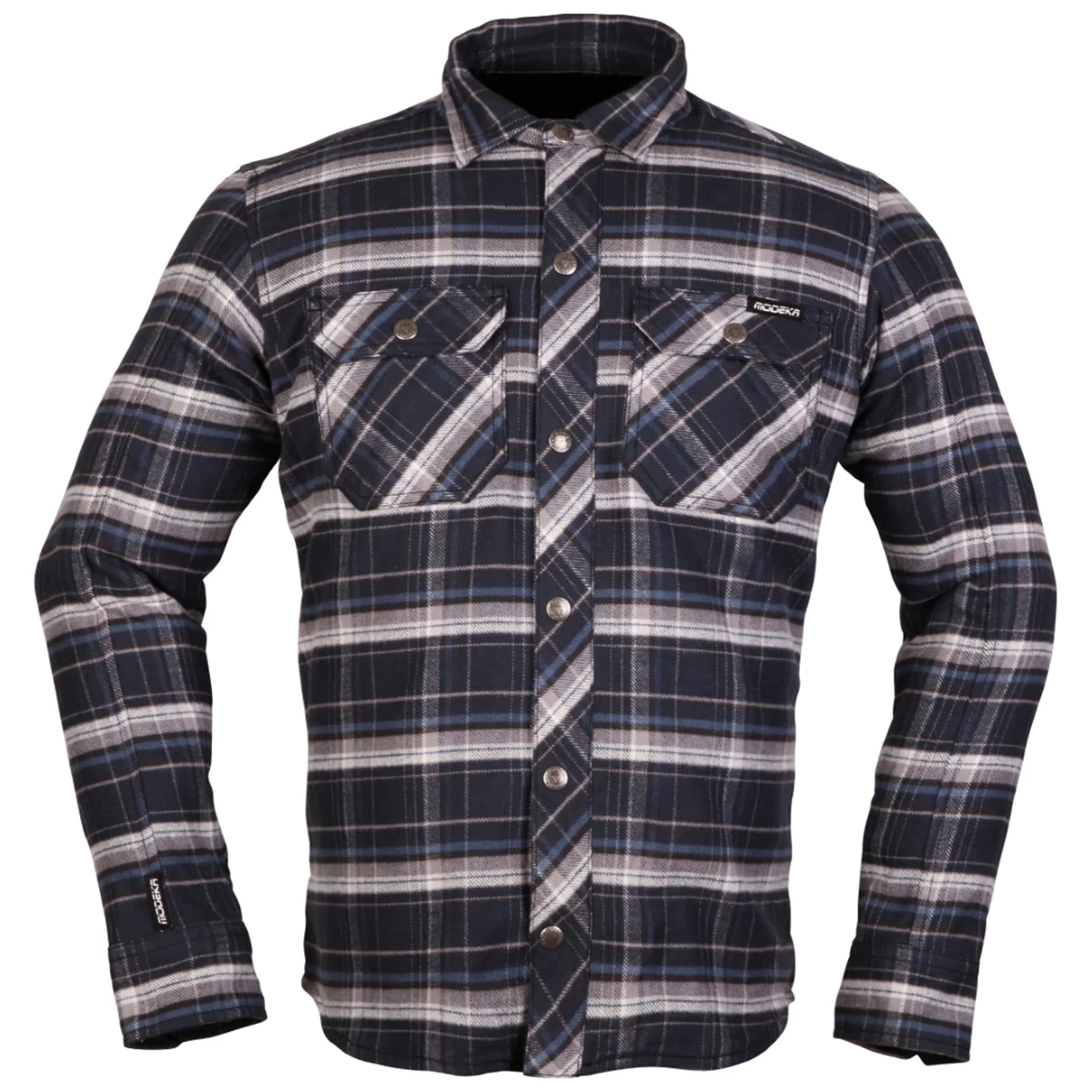 Nooneer ist ein Motorradflanellhemd mit superflachen und flexiblen Level-2-Protektoren sowie Aramid-Verstärkungen an Schulter und Ellbogen.