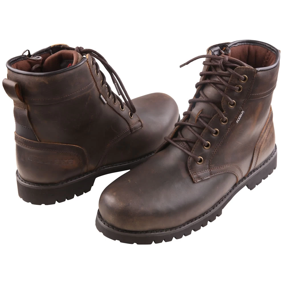 Der Modeka Schuh Lynton ist ein wasserdichter Urban-Boot aus hochwertigem Rindleder im Used-Look. Ein praktischer ReiĂverschluss an der Seite erleichtert das Anziehen. Verschiedene VerstĂ€rkungen und Ausstattungsmerkmale sorgen zudem fĂŒr weiteren Komfort und Sicherheit.