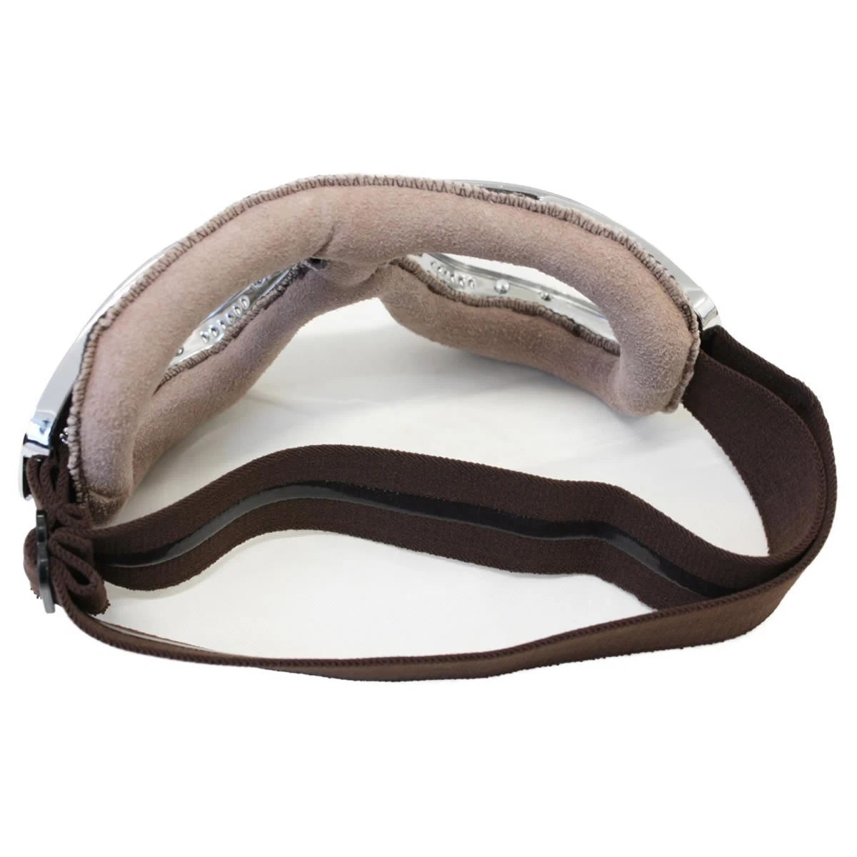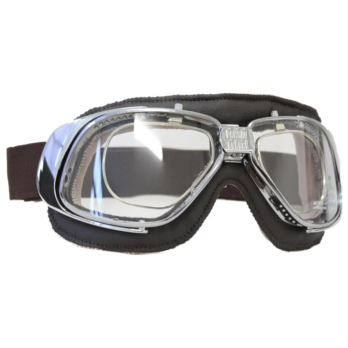 - Motorradbrille aus schwarzem Leder mit Metallrahmen in chrom