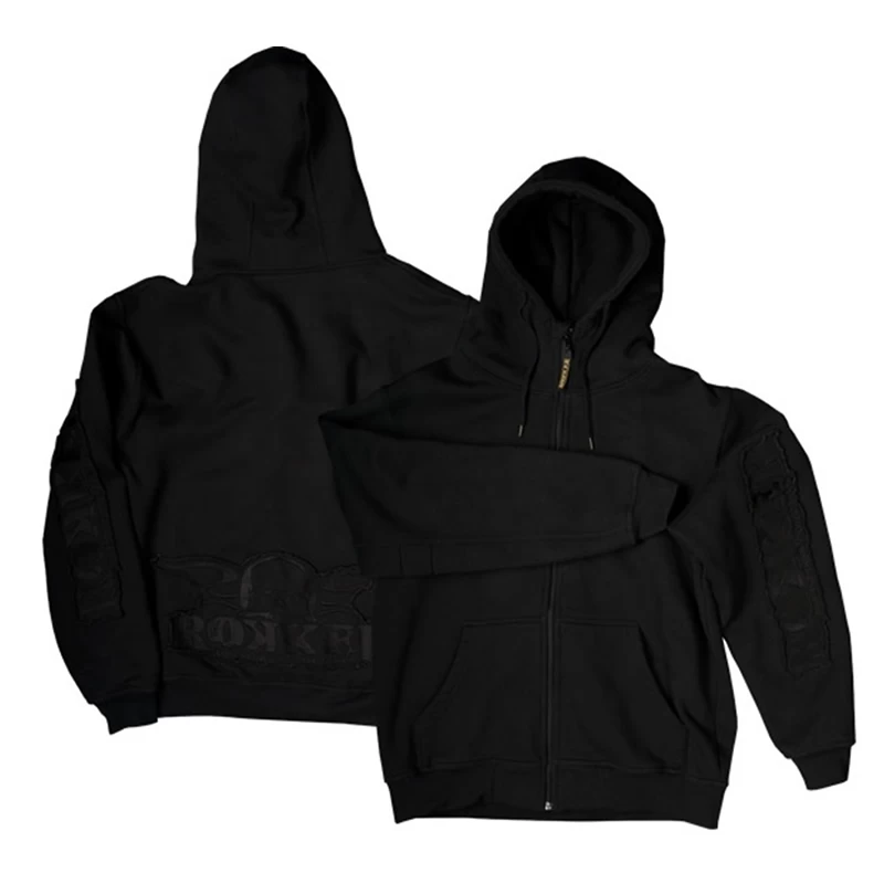 Der ROKKER Hoody Zip ist ein modischer und bequemer Hoodie fĂŒr die Freizeit mit aufwĂ€ndiger Stickerei und Kragen mit Kinnschutz