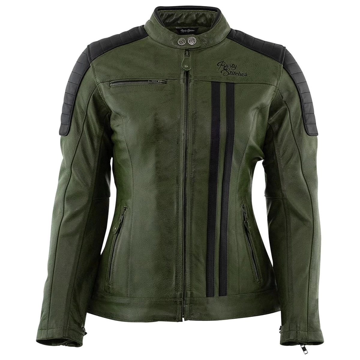 Rusty Stitches Damen Lederjacke Alice, Schwarz-weiß