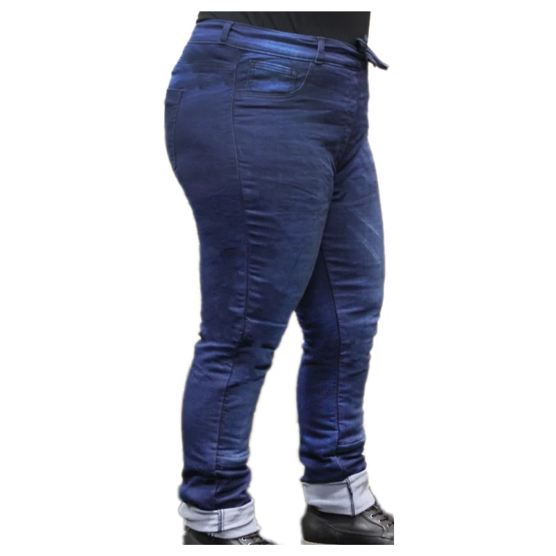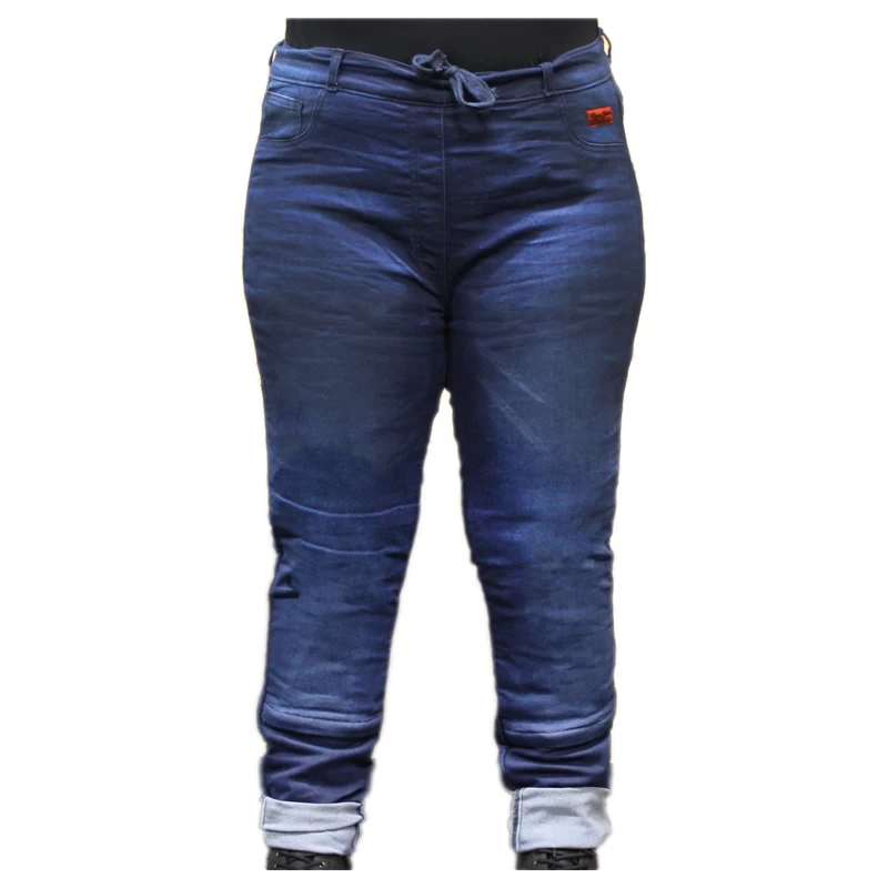 Rusty Stitches Übergrößen-Jeans Super Ella – Eine Leggings ähnliche Motorradhose für ganze Frauen die auch auf dem Motorrad eine gute Figur machen wollen. Die Hose kann nachträglich mit Knieprotektoren ausgestattet werden und ist dank Kevlar®-Futter hochabriebfest.