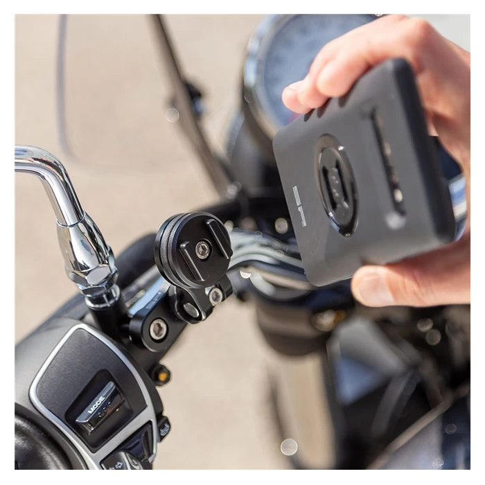 Mit dem SP Connect™ CLUTCH MOUNT PRO können Sie Ihr Smartphone in Sekundenschnelle an Ihr Motorrad befestigen, auch wenn der Lenker nicht leicht zugänglich ist.