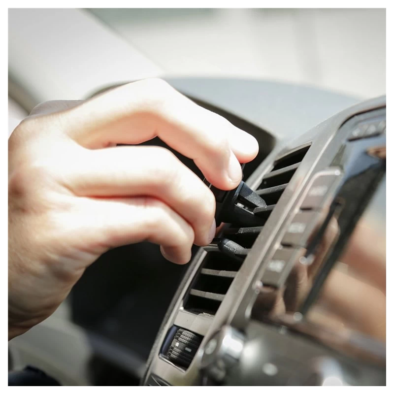 Die Halterung lĂ€sst sich in Sekunden an den LĂŒftungsgittern Ihres Autos anbringen.