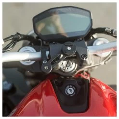 Montieren Sie die Moto Mount Pro Halterung am Lenker Ihres Motorrades. Somit können Sie in Sekundenschnelle Ihr Smartphone befestigen indem Sie es auf der Halterung platzieren und mit einer 90° Drehung im Uhrzeigersinn verriegeln. Ihr Handy ist sicher in der Mitte Ihres Blickfeldes positioniert.