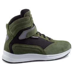 Gefertigt aus Wildleder gemischt mit technischem Gewebe, mit einem wasserdichten und atmungsaktiven Futter, mit dem beidseitigen Knöchelschutz aus PU, und der neu gestalteten Anti-Rutsch-Sohle ist der Audax-Motorradschuh sicher und angenehm zu tragen.