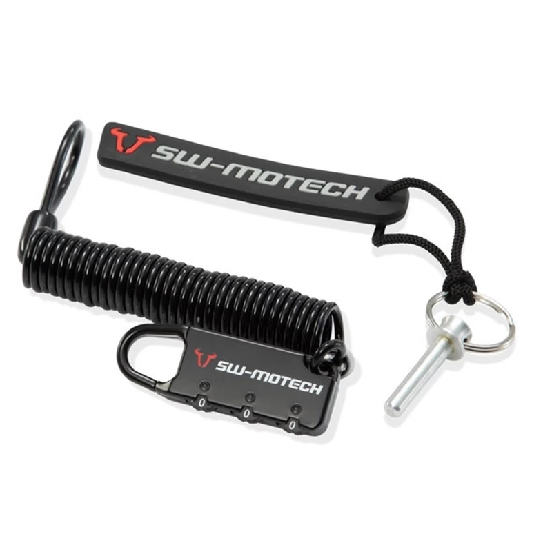 SW-Motech Diebstahlsicherung für EVO Tankrucksack – Praktisches Zubehör zum Sichern Ihres Gepäcks am Motorrad, bestehend aus einem Sicherungsstift und Kabelschloss.