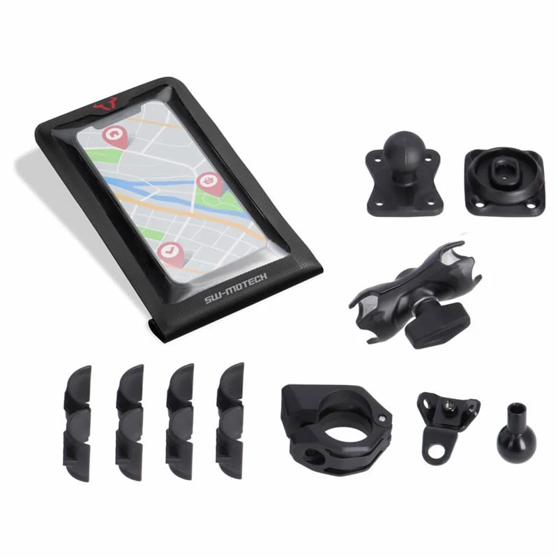 In diesem Rundum-sorglos-Paket sind ein wasserdichtes Smartphone Drybag und verschiedene Befestigungselemente enthalten. Die T-Lock Aufnahme auf der RĂŒckseite des Smartphone Drybag ermöglicht die schnelle Befestigung am Universal Navi-Kit: Mit einer Vierteldrehung im Uhrzeigersinn wird das Smartphone Drybag am Klemmarm fixiert.