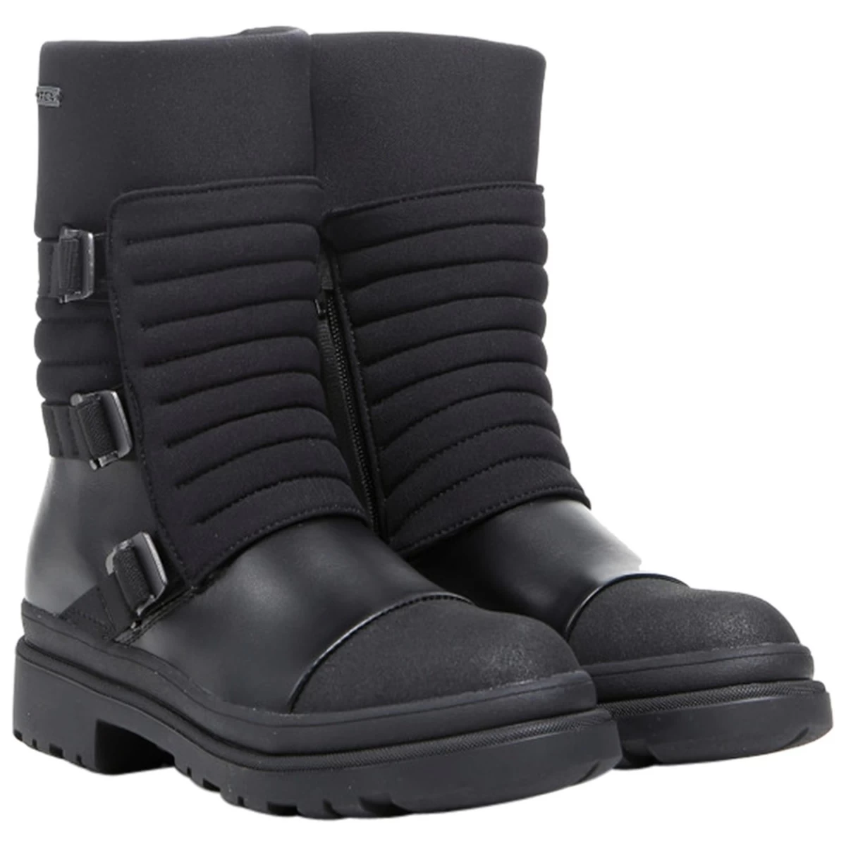 Damen Motorradstiefel mit schĂŒtzenden VerstĂ€rkungen an Knöchel, Zehen und Ferse. Die Stiefel sind nach dem Woman Fitting Concept konzipiert, dem speziellen TCX-Protokoll, das entwickelt wurde, um die perfekte Passform fĂŒr den weiblichen FuĂ und maximale Sicherheit zu kombinieren.