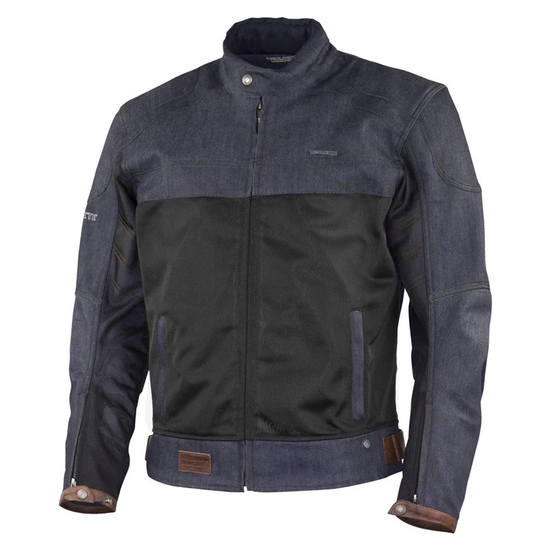 Die Kombination aus dunkelblauen Denim, schwarzem Mesh und braunem Leder gibt der Jacke einen einzigartigen Look. Die leichte und komfortable Jacke ist mit technischen Features einer Motorradjacke ausgestattet, die Schutz und Sicherheit während der Fahrt bietet. Kompatibel zu der Jacke ist die Airtech Hose.